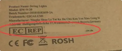 Authorized representative information and energy efficiency labels can be printed on products, product packaging, or accompanying documents